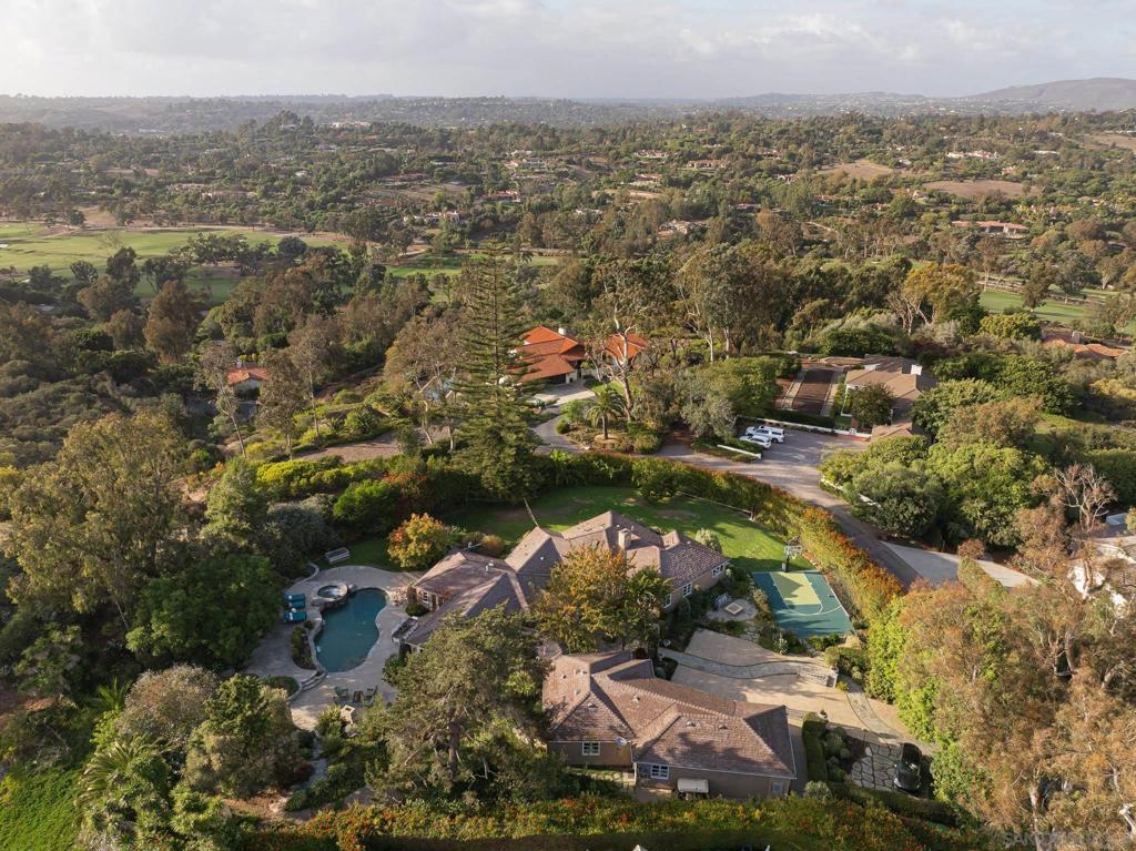Ideally located on one of the most sought-after streets in the renowned Rancho Santa Fe Covenant, with views of beautiful sunsets and the golf course, is this enchanting single-level home seamlessly combines charm, sophistication, and functionality. Your private oasis awaits with an expansive backyard that borders acres of open space, impeccably groomed trails, and just a short walk to the Rancho Santa Fe Village, the acclaimed Roger Rowe Elementary and Middle schools and the Rancho Santa Fe Golf and Tennis clubs. You will immediately fall in love with the beauty of the lush landscape and the inviting private courtyard entry. The home boasts a freshly remodeled kitchen, and exquisite reclaimed maple floors throughout. It has a sun-drenched great room, and a gourmet eat-in kitchen, that seamlessly open onto the pool and entertaining areas with westerly views and gentle ocean breezes. The interior design includes 5 bedrooms, 4.5 baths and floor-to-ceiling windows and French doors that seamlessly caters to the indoor/outdoor living you can enjoy year-round in San Diego.
